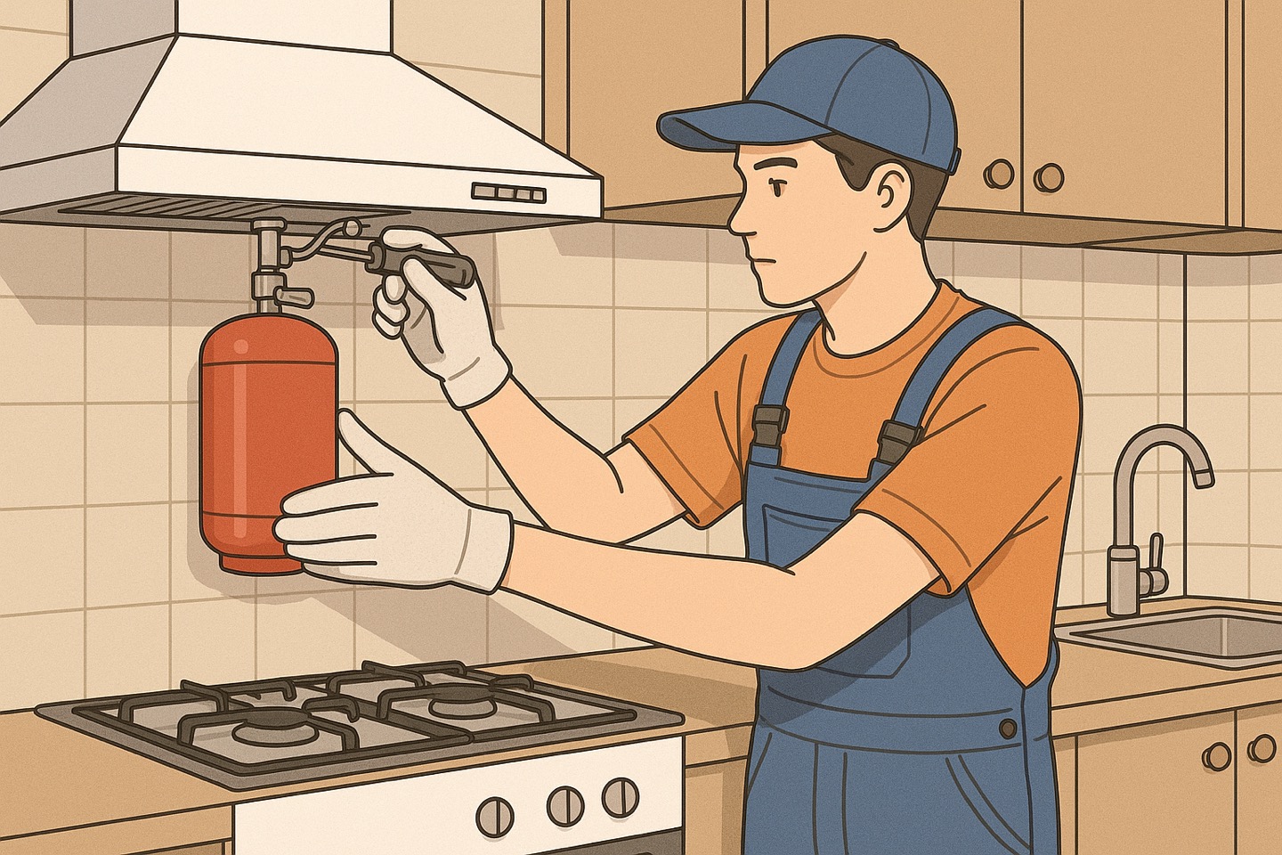 가연성 가스의 누출을 자동으로 차단, 화재 발생 시 소화약제를 자동으로 방출하여 열원(전기 또는 가스)과 화재를 소화하는 장치를 말한다.